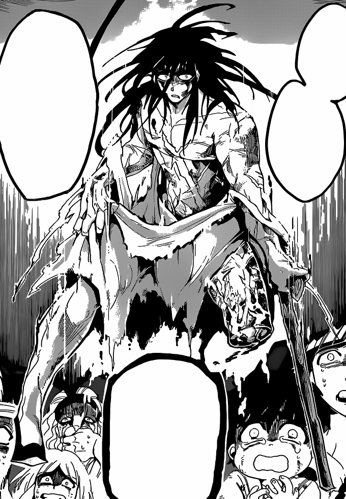 Badr begins to get up and begs him to surrender peacefully. Darius is enraged by his suggestion. Badr adds that taking Sinbad as a hostage will do him no good, as they are treated as ex-patriots and he has nowhere to run. However, his information may be useful to the army. Darius begins to answer that it's a good idea, which makes Badr a little happy, but his hopes are soon crushed when Darius gets mad and asks how can he asks such a thing from someone who proudly serves Reim to bring it victory. He clearly states that he's a proud citizen of Reim and would never betray his country, like Badr did. He then shoves his sword into Sinbad's mouth and screams that seeing an ex-patriot like him really pisses him off and he won't take orders from some cowardly ex-patriot. Badr gets mad, standing up and stabs Darius with his sword. As he takes the sword off and takes Sinbad back, he adds that he doesn't care about this country or being called an ex-patriot, but he won't forgive anyone trying to harm his family. He then watches Darius dying with Sinbad clinging to him.[8]