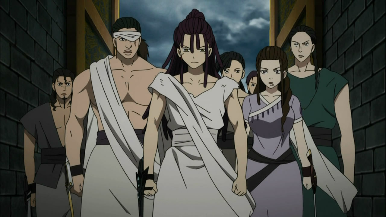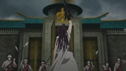 Then, he is talking with Alibaba, who asks him what exactly is he planning. Alibaba notes that Cassim has been recruiting unknown people lately and the number of the Fog Troupe's members doubled this month alone. When asked if he's planning to start a war, Cassim says that a war is a good idea, but quickly adds that he's joking. He adds that nonetheless, they have to continue to fight, as this country is already done for, mentioning that only nobles and officials are now enjoying three meals a day. He then leans towards Alibaba saying that they need someone to punish these guys, and he, as a leader should be aware of such things more quickly. In this moment, kids come to thanks Alibaba for his actions, which Cassim watches smiling. When they leave, Cassim grabs Alibaba and keeps pushing him into thinking he's the only one who can change lives of people from slums. He begs him to stay by his side and fight with him like in the past.[4]