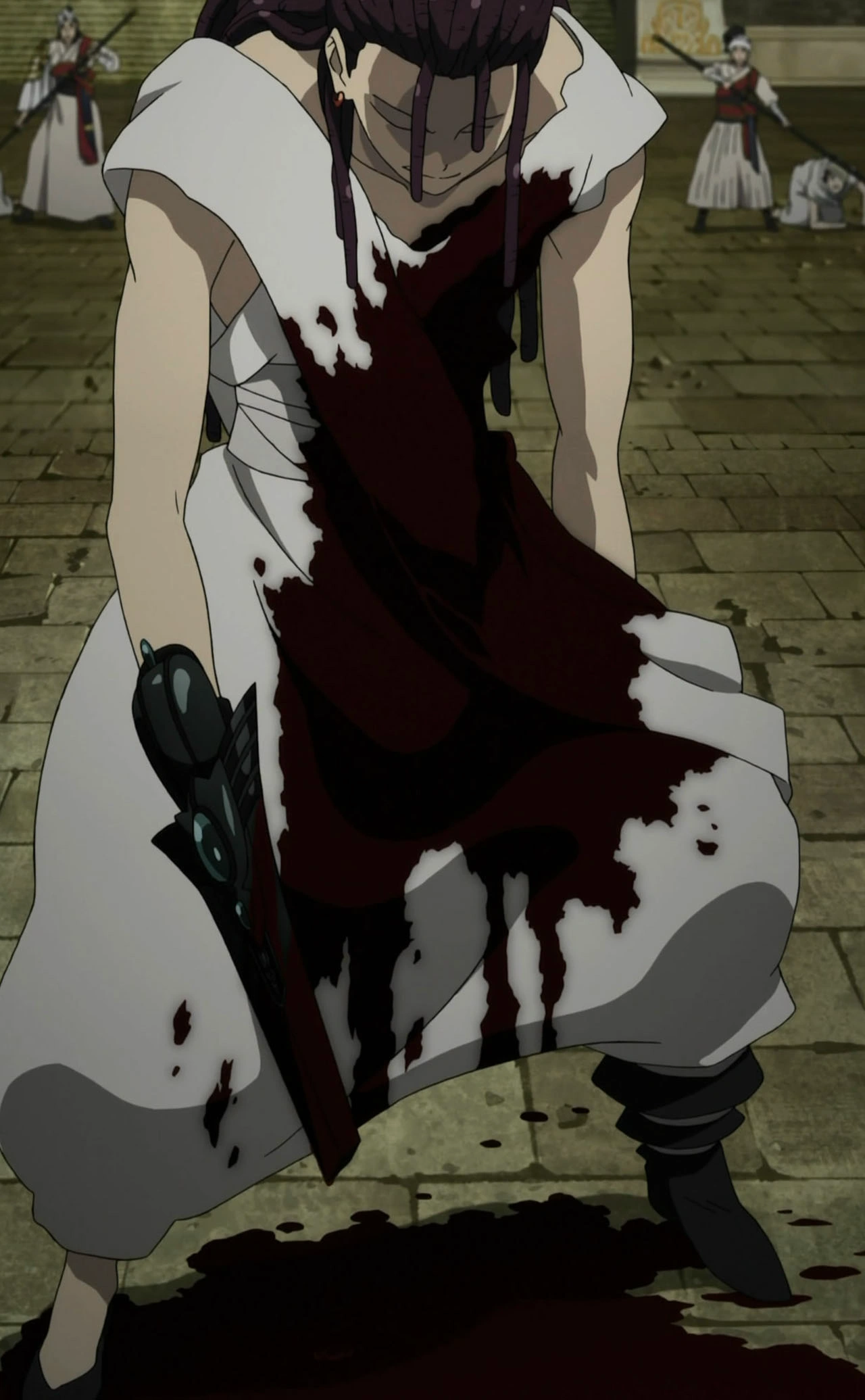 Kokubaku Mutou (Sword of the Black Binding Fog): This weapon is a Dark Metal Vessel. This creates a fog that is as heavy as lead and once covered in it, it can immobilize even those as strong as Morgiana (though not entirely). Cassim can accumulate a lot of Black Fog to make a huge ball out of it.