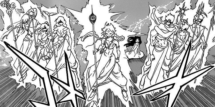 The Divine Staves (神杖, Shinjō) are 72 special staves that are able to receive a great quantity of Magoi sent by Ill Ilah. They were given to the humans of Alma Torran 800 years ago by Ill Ilah in order to create "world peace". However, the corrupted Elder Council of the Magician's Orthodox monopolized the staves and started to use them oppress the other species. By constructing special towers where unknowing magicians gradually sacrificed their life force to seal the ability to think from all the species apart from humans. The objective of the Resistance created by Solomon Jehoahaz Abraham was to steal them.[1]