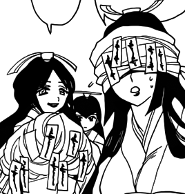 While Kouen's Household are fighting against the Black Djinn, she and the other witches are worried over Kouha's arm. When Kouen unsheathe his sword Junjun is alarmed, but when Kouen heals his brother with the powers of Phenex she thanks and bows towards Kouen repeatedly.[11]