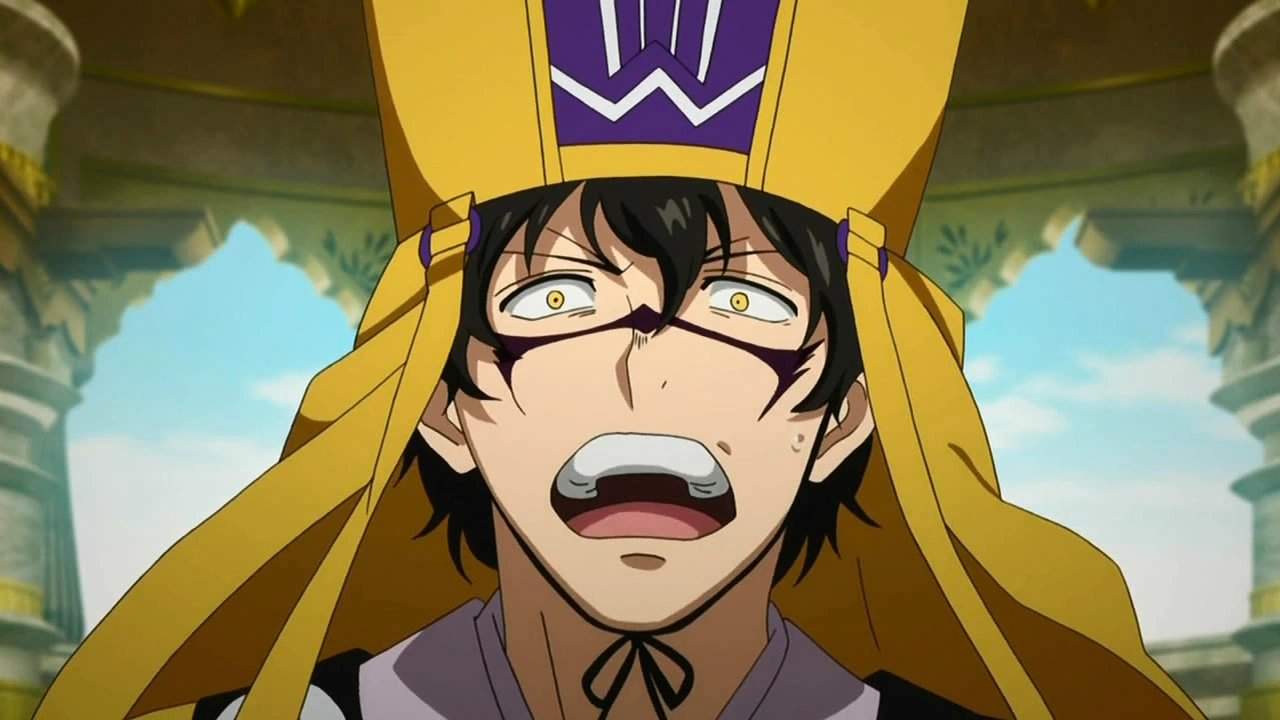 Koubun arrives in Sindria together with Kougyoku and her cousin, Hakuryuu Ren. Sinbad greets them respectfully but is suddenly attacked by Kougyoku who accuses him of defiling her body. Asked what is the meaning of this, Kougyoku starts crying, so Koubun interrupts. He explains that it's too harsh for her to tell the whole story from her mount. He notes that it's the testimony from the Princess herself and, points out at the soldiers, saying that there are also other witnesses. He begs them to take it as the truth. Then, he begins to recreate what has happened according to Kougyoku herself.[9]