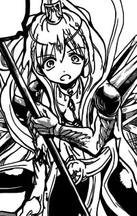 He is then carried around by Koumei, until he regains his Magoi thanks Scheherazade. He Djinn Equips and alongside other Seven Seas Alliance's member as well as Reim's and Kou's Dungeon Capturers, uses his Extreme Magic to deliver the final blow to the Medium.[39]