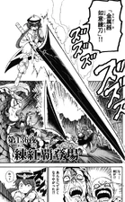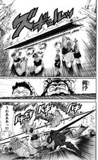Kouha is on a caravan heading to Magnostadt with his attendants when Aladdin joins them. The caravan is then attacked by thieves using Magic Tools and before Aladdin could retaliate, Kouha jumps in front and starts to attack them with his Metal Vessel, Nyoi Rentou. He asks if they are trying to ruin the mood of his long-awaited journey.[10] Kouha asks if he should execute the old men. One of his attendants says that they need to pass by unnoticed, but another one says it is useless. Kouha begins the onslaught by showing what Nyoi Rentou can do, which is elongate or retract at Kouha's will. He cuts the attacks from their Magic Tools, the thieves' hands, the horse's heads, and begins to slice the thieves and horses into pieces.[11]