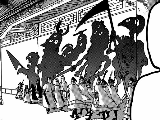 As Kouha and his army prepare themselves for battle against Hakuryuu, Kouha with his determination steeled, vowed that this fight would be "the last fight in the Kou Empire's history" and telling his army that they were going to finish it. His handmaidens look at him worryingly as they continue to advance.