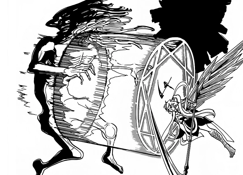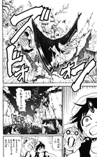 Just then, a Metal Vessel Symbol appears above the 3 Black Djinn, it is Kouha's Extreme Magic, Lelazzo Madraga. Kouha slashes down on the Djinn, and everything in the vicinity gets pulverized by the sheer force of the Extreme Magic. The Djinn are all smashed into a crater in the ground, leaving just Black Rukh.[22]