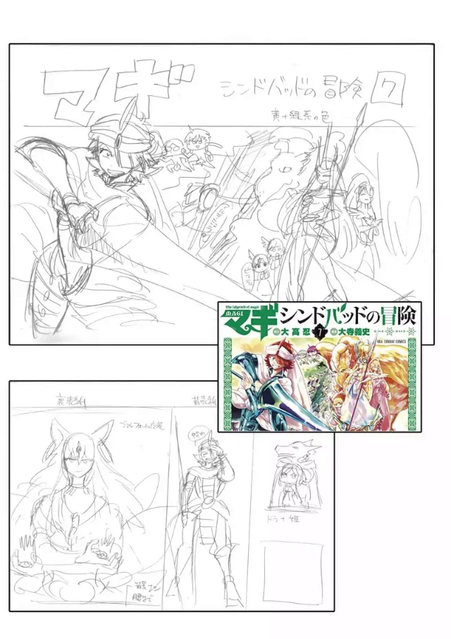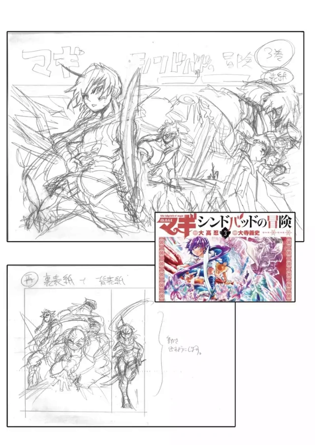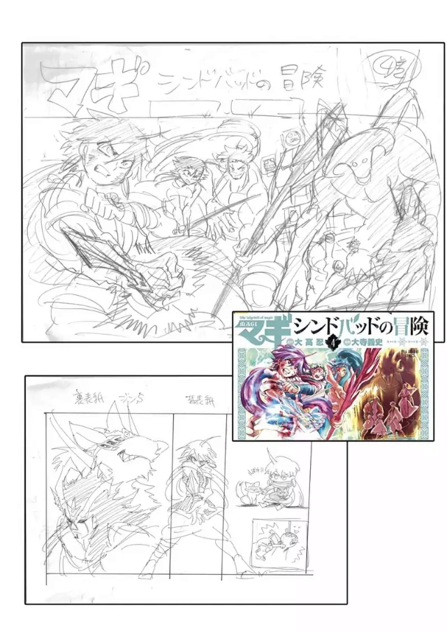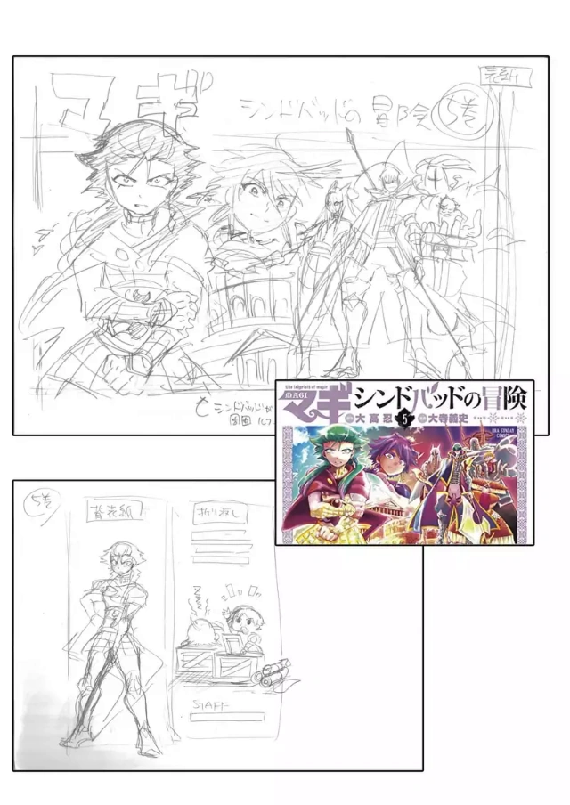 | Extras | Volumes' Extras | Shinobu Ohtaka's Tegaki Extras | Magi News @ Web |