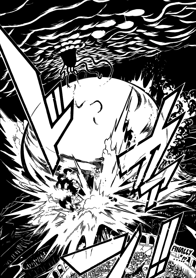 Hakuei summons her Extreme Magic, Pa'ir Al-Hazard, and catches it in the tornado. Then, Kouha comes at it with Lelazzo Madraga and makes a hole in it. He sends it right to the ocean where Kougyoku is waiting and preparing Vainel Ganezza, which she makes looking like a spear. She leaves an even bigger hole in it. After that, Aladdin uses Har-Har Infigar on it.[16]