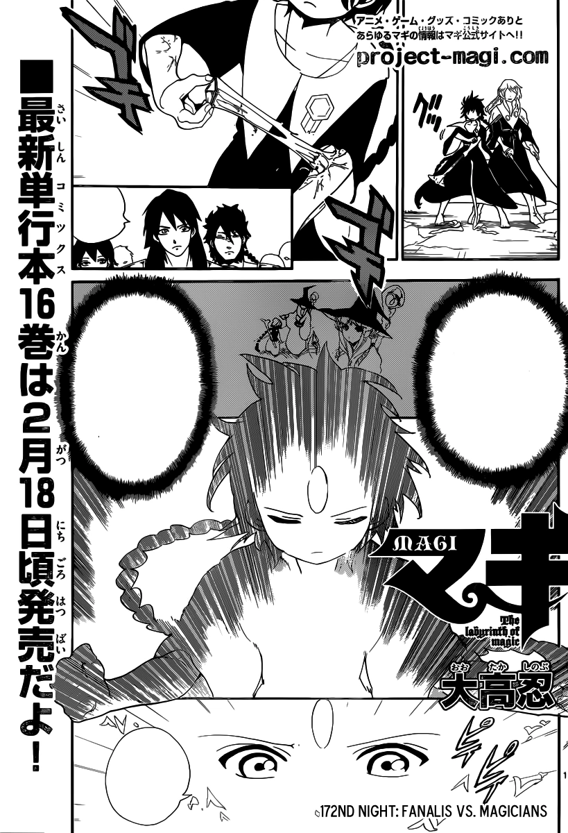 Fanalis vs Magicians (ファナリスVS魔法使い, Fanarisu VS Mahōtsukai) is Night 172 of the Magi manga series.