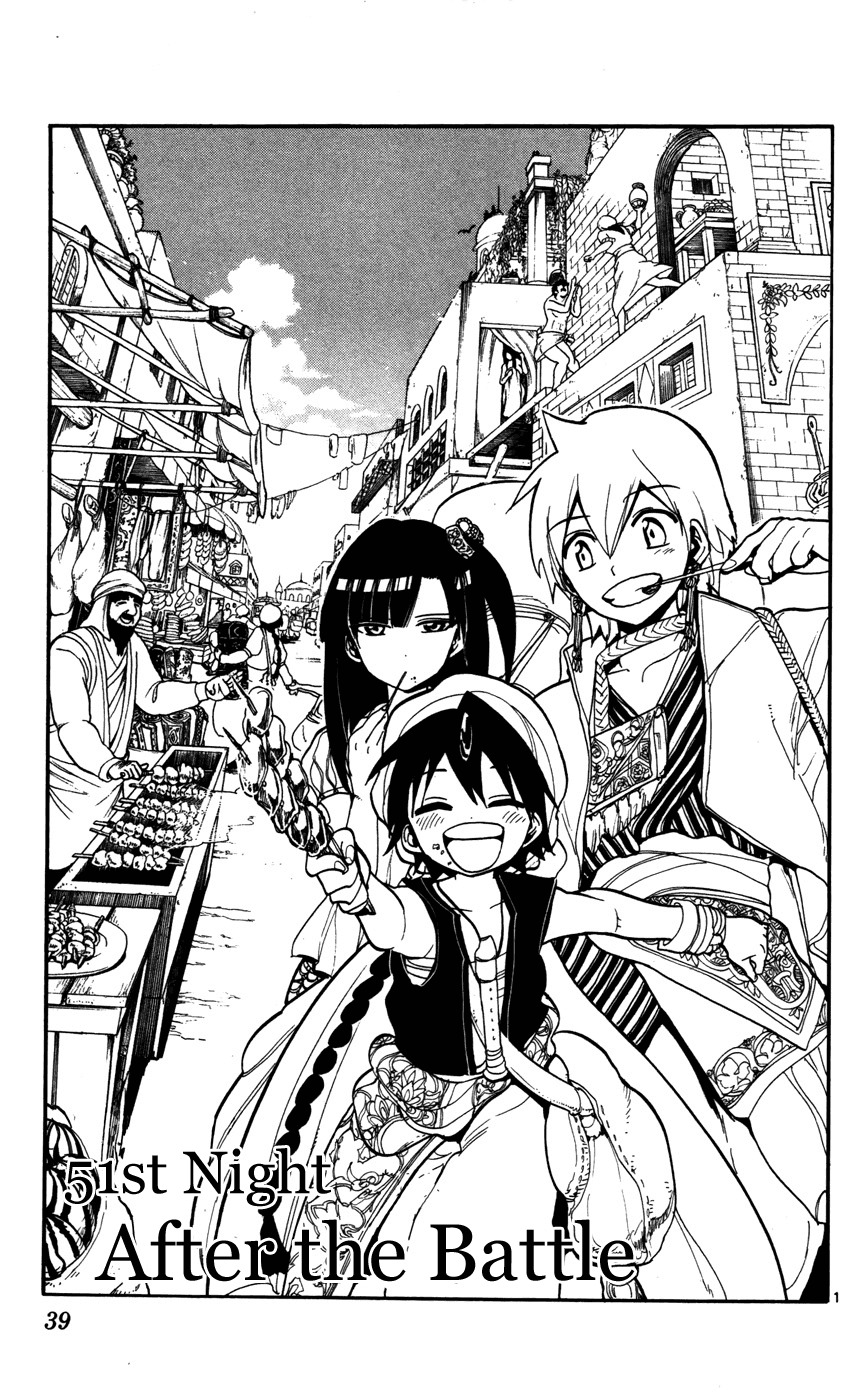 After the Battle (戦いの後, Tatakai no Ato) is Night 51 of the Magi manga series.