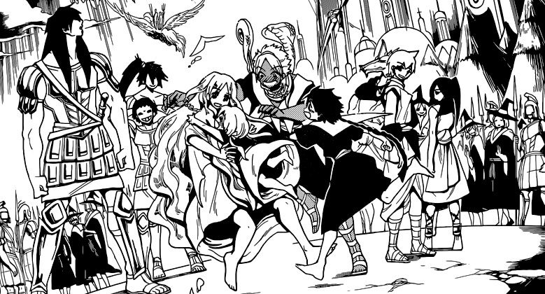 Sphintus becomes a subordinate of the High Priest of the Reim Empire. When Alibaba arrives in Reim to negotiate the establishment of transportation magic circles, he is greeted by Masrur, who then leads Alibaba to meet the High Priest. Titus greets Alibaba warmly, addressing him as the envoy of the Kou Empire Trading Corporation, and later as simply, Alibaba. Alibaba notes how Muu and Titus have not changed at all since the summit, except for the fact that Titus looks a little more grown up. Sphintus also welcomes Alibaba, but Alibaba does not recognize him. Titus reintroduces Sphintus, and Alibaba is shocked, as he remembers Sphintus as the young, perplexed boy who was awestruck at the fact that Alibaba was royalty from Balbadd[40]. Alibaba then comments how so many people changed while he was dead.