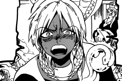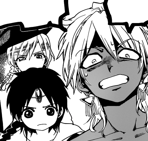 When Aladdin assures Titus that their friend doesn't care about he whether is human or not, Sphintus, along with Myers, Nero and other Magicians surround the Fanalis to begin an assault. He is shocked when he sees the Fanalis surviving one of the attacks.[28] Then, Sphintus is surprised when Aladdin's power is beginning to release, as he immediately notices the Rukh acting weird around Aladdin. He is terrified when Magicians one after another get killed by Fanalis Corps' members and shocked when he sees his friend creating Ugo.[29] He wonders what Aladdin wants to do when his identity as Magi is revealed.[30]