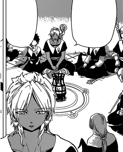 Afterwards, in the class, Sphintus goes to Aladdin and Titus, saying that they're only ones who got multiple Zemi recommendations. He tells them to hurry up and choose.[22] Then, he is relieved that he managed to get a recommendation, even if it's just barely. He attends a class in "High Level Healing Magic". He then watches Aladdin and Titus choosing.[23]