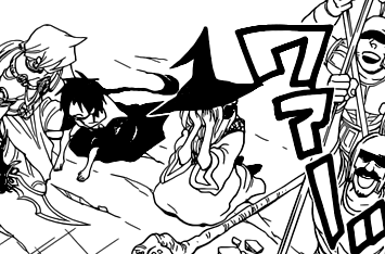 Yamraiha is sent with Sharrkan and Masrur, to help Aladdin, Alibaba, Morgiana and Hakuryuu, in case they were attacked by members of Al-Thamen. Sharrkan releases Alibaba and Aladdin from Zurmudd, and Yamraiha catches Aladdin.[11] When Alibaba apologizes, they reassure him that they did a good job with capturing Zagan and to leave the rest up to them. When Zurmudd enrages Masrur by saying that they will end up like Morgiana, Masrur throws him angrily, and Sharrkan says that he and Yamraiha are the other two's opponents.[12] Right after that, Byoln shows his sword which leads Sharrkan to leaving Apollonius to Yamraiha.[13]