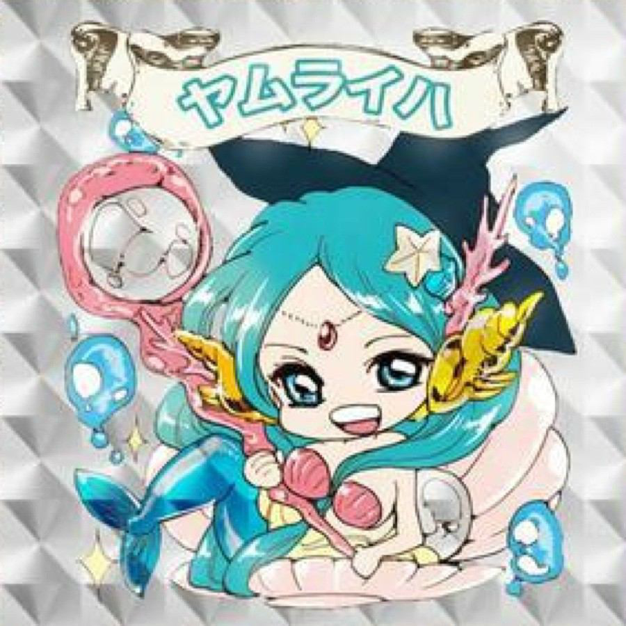 Yamraiha is short young woman with well endowed breasts and long cyan hair. She seems to wear a long off-white robe and a black hat that resembles a typical witch's hat. She has a red gem on a chain around her forehead and golden cone-shaped shells covering her ears. She wears clam shells on her breasts which expose quite a bit of cleavage. After a battle with Apollonius, she briefly wears a normal covering clothing in replacement of the destroyed clam shells. She usually carries around a staff. She is also noted to be very attractive.